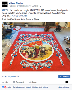 These videos, which I filmed, produced, and edited, served to introduce our Billy Elliot actors to audiences and give a sneak-peek of the rehearsal process and the production. They had a combined reach on Facebook of 72,000, with an additional 12,000 views on YouTube.